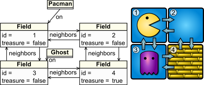 The Pacman demo application is shipped with MocOCL by default. However, you may upload and verify your own system description at http://localhost:8080/mococl/testcm.xhtml (depending on your deployment configuration).